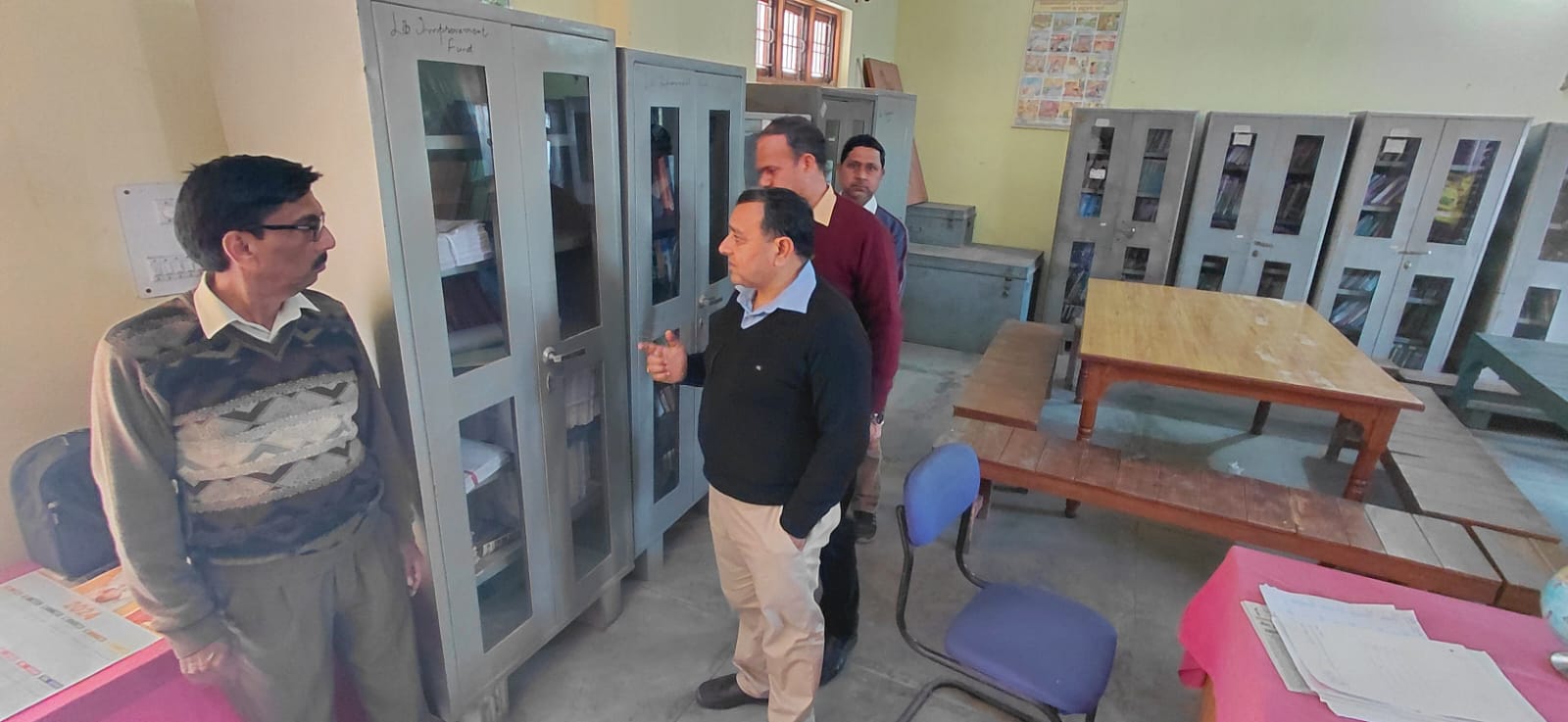 At Government Higher Secondary School Chakra, Shri Kewal Krishan inspected the school library and held an interaction with the staff. He encouraged the promotion of reading habits among students and underlined the role of libraries in strengthening academic foundations. He also observed that students were appearing in their examinations during the visit and appreciated the disciplined and orderly conduct of the papers.