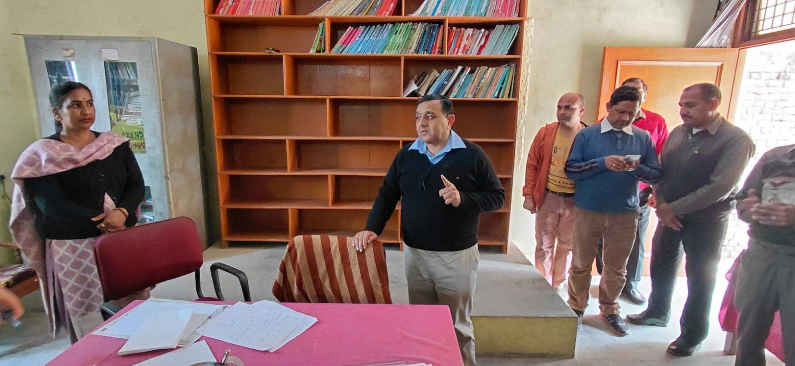 At Government Higher Secondary School Chakra, Shri Kewal Krishan inspected the school library and held an interaction with the staff. He encouraged the promotion of reading habits among students and underlined the role of libraries in strengthening academic foundations. He also observed that students were appearing in their examinations during the visit and appreciated the disciplined and orderly conduct of the papers.