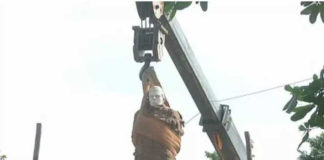 Congress workers protest in Allahabad after removal of Nehru statue