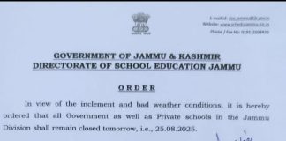 All Jammu Division Schools To Remain Closed On 27th August