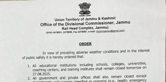Closure of all government and private schools across Jammu division due...