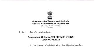 J&K Govt Orders Major Reshuffle, Transfers 41 JKAS Officers