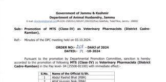 Promotion of MTS (Class-IV) as Veterinary Pharmacist