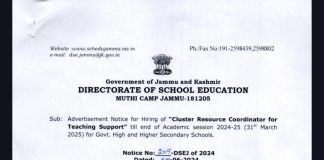 Advertisement Notice for hiring of “Cluster Resource Coordinator for Teaching Support”...