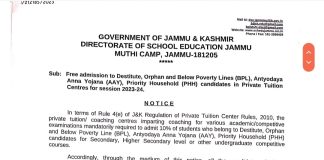 Free Tution In Private Institutes For Destitutes, Orphans And Underprivileged By...