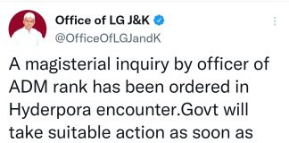MAGISTERIAL INQUIRY ORDERED BY Lt. GOVERNOR IN HYDERPORA ENCOUNTER CASE