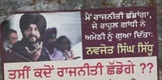 नवजोत सिद्धू के खिलाफ लगे पोस्टर,पूछा कब छोड़ेगे राजनीति
