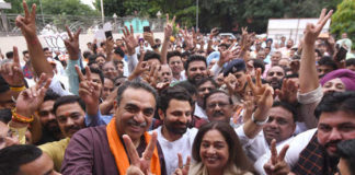 चंडीगढ़ भाजपा पार्टी आफिस कमलम मे कार्यकर्ता मना रहे जश्न
